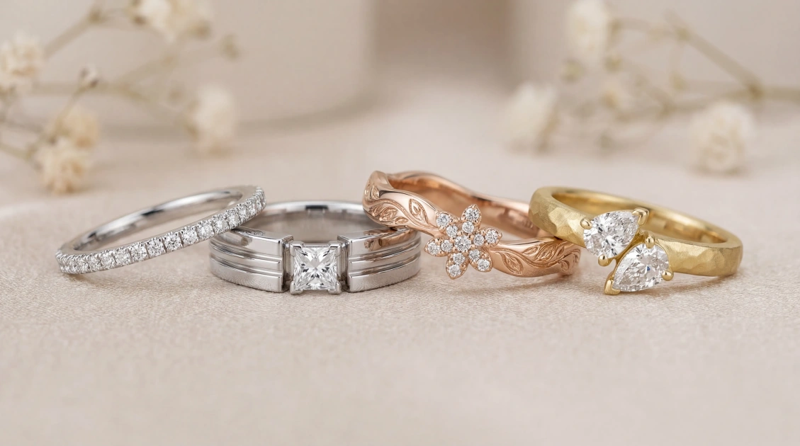- Metal & Base Form: Start with the foundation. "A matte rose gold wedding band," "A polished platinum ring with a flat comfort-fit profile."