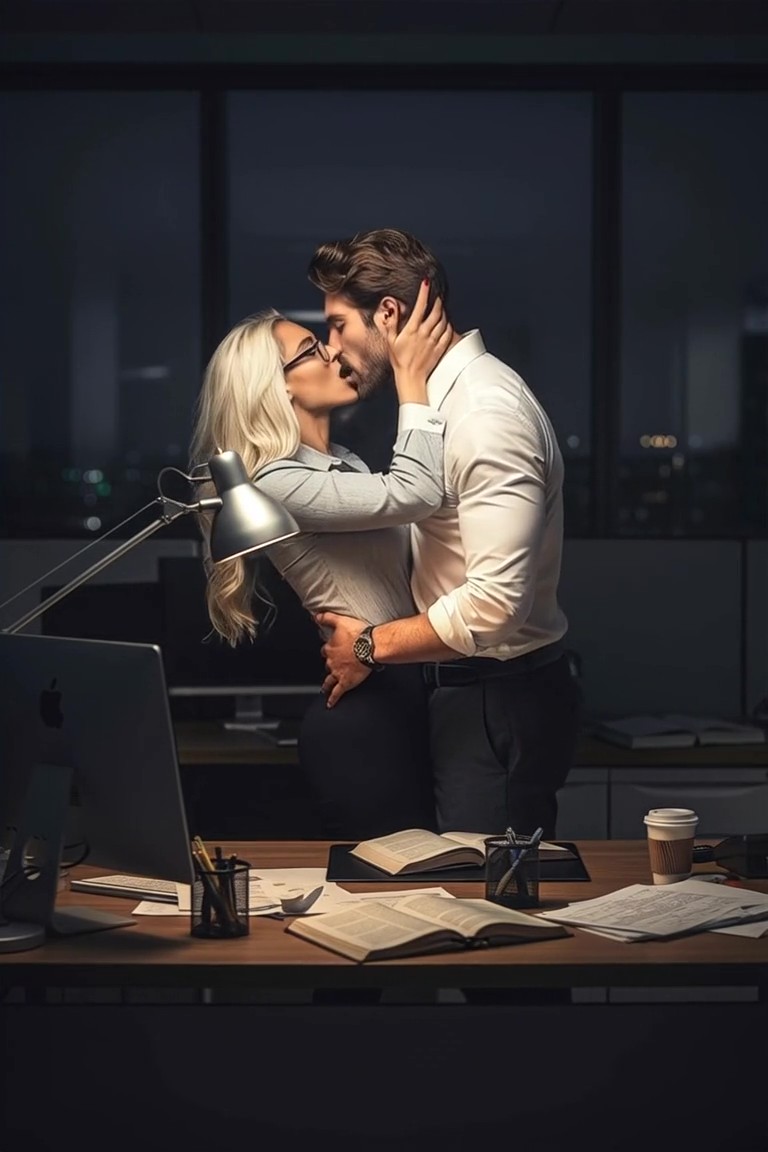 The AI creates a soft and romantic atmosphere by balancing background blur, lighting warmth, and environmental simplicity. This ensures the scene supports intimacy without distracting from the kiss itself.