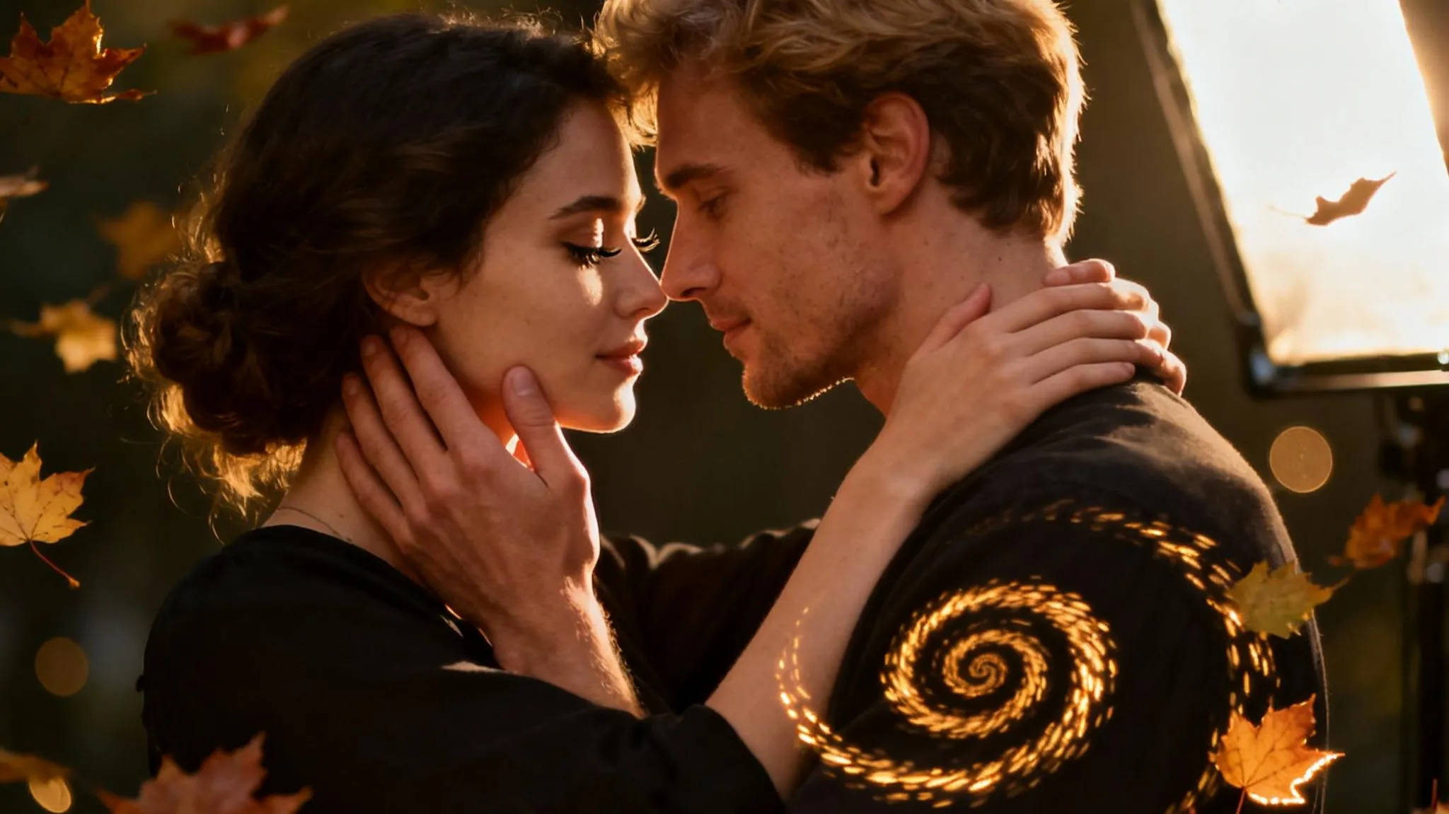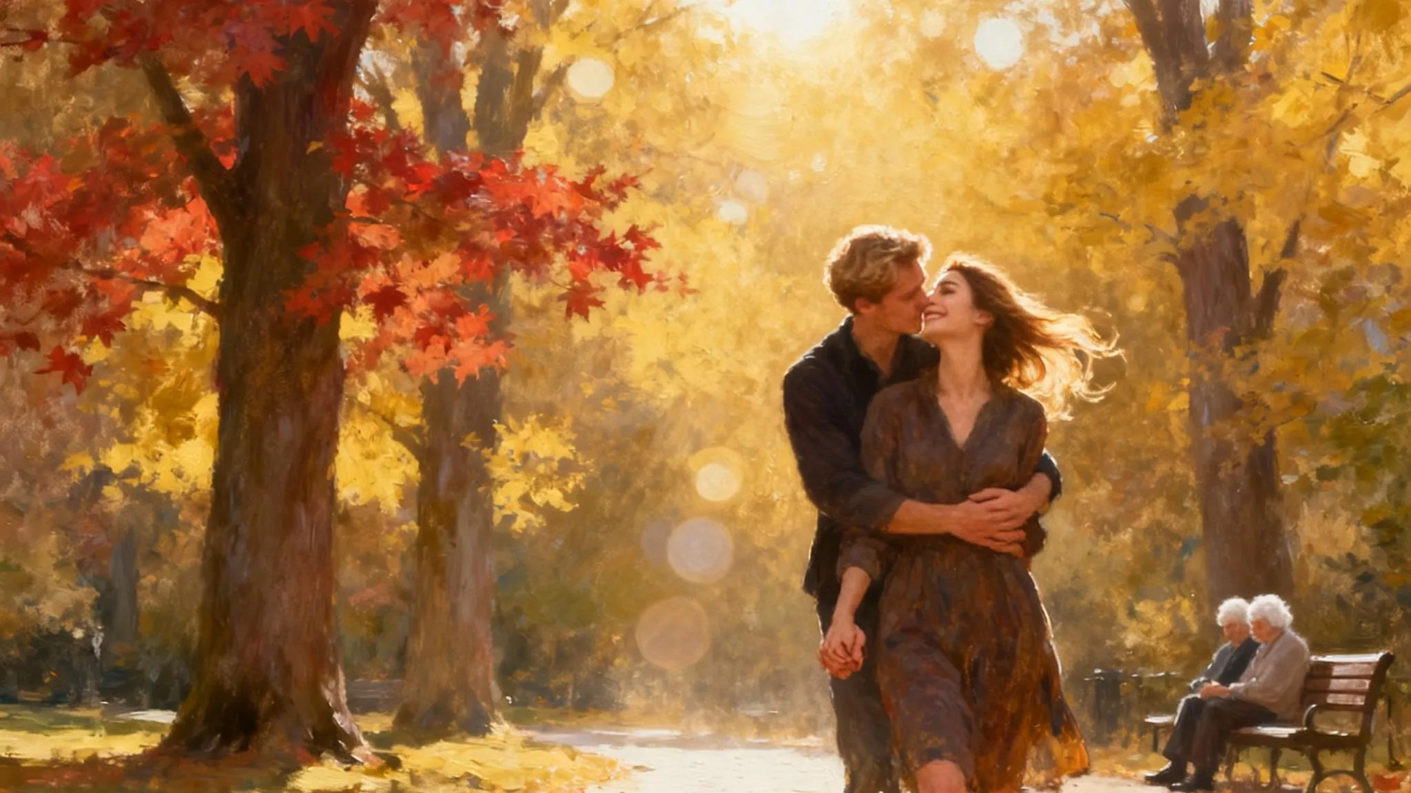 The AI intelligent algorithm simulates the effect of leaves dancing in the wind and gently falling. These delicate particles not only serve as background elements but also dynamically interact with the characters, brushing hair or landing on shoulders, enhancing the scene's vibrancy and immersion, making the kissing moment more naturally poetic.