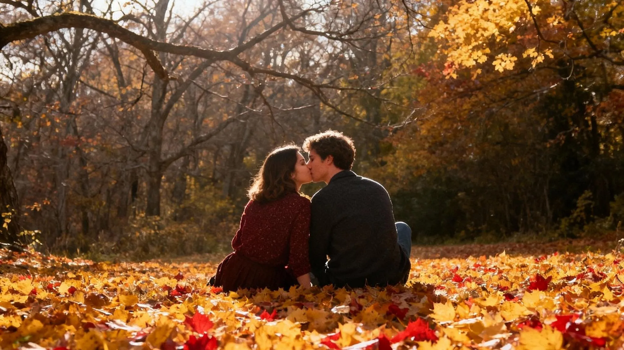 【Kiss Series】Romantic Fallen Leaves - Embracing Kiss Under Golden Autumn Leaves