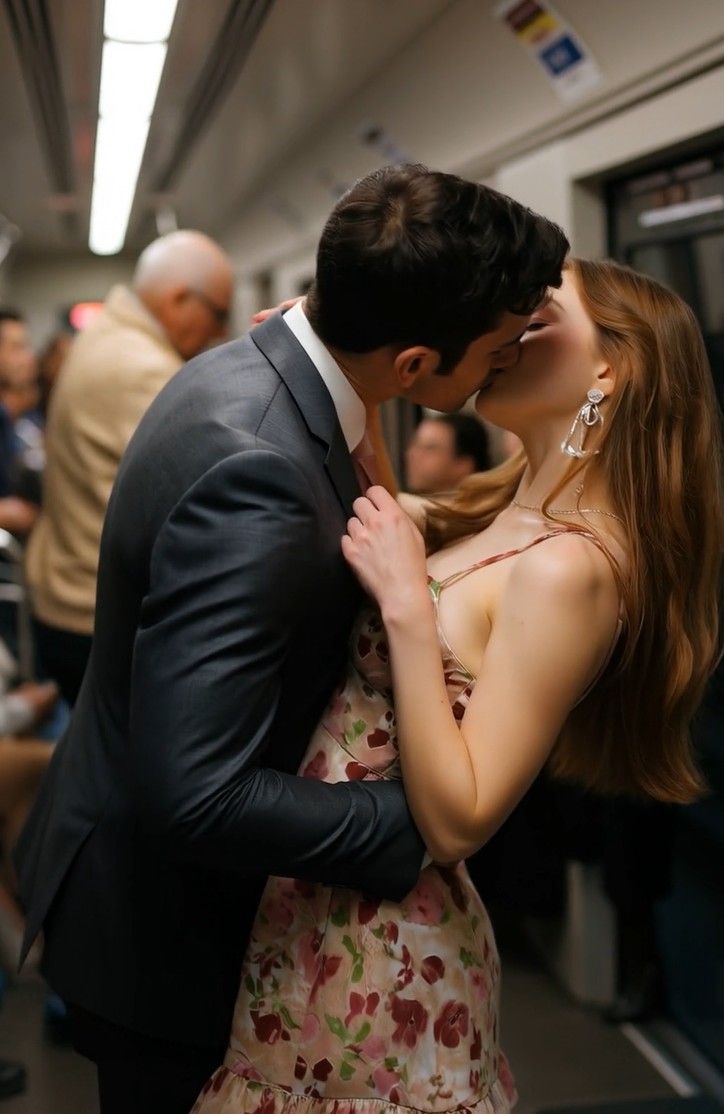 Close‑up or half‑body framing combined with gentle push‑in or minimal orbit camera movement guides attention toward the kiss and emotional exchange, enhancing cinematic quality.